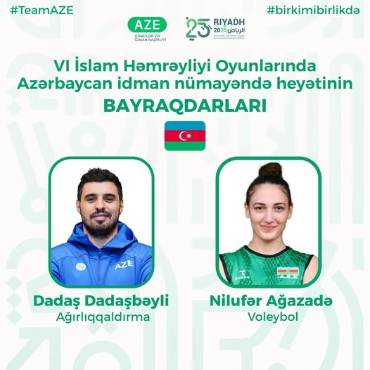 Qobustan rayon idmançısı bayraqdar olacaq!VI İslam Həmrəyliyi Oyunlarında Azərbaycan idman nümayəndə heyətinin bayraqdarları müəyyənləşib.Bu gün keçiriləcək açılış mərasimində üçrəngli Azərbaycan bayrağını ağırlıqqaldırma üzrə idmançımız Dadaş Dadaşbəyli və voleybolçu Nilufər Ağazadə aparacaqlar.Dadaş Dadaşbəyli (109 kq) Bolqarıstanda keçirilən Avropa çempionatında üç qızıl, Tailandda təşkil olunan Dünya Kubokunda üç gümüş, Bəhreyndə baş tutan dünya çempionatında isə bir gümüş medal qazanıb.Nilufər Ağazadə isə 2025-ci ildə Azərbaycan çempionu olub.